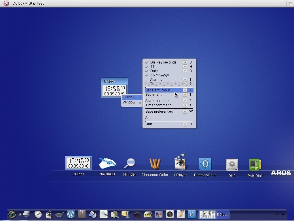 Pochi giorni fa è stato pubblicato su Aminet DClock16 una vecchia applicazione completa di sorgenti, bene dopo qualche giorno è stata compilata una versione AROS ABIv0, allergati i due link per il download della versione 68k e AROS ABIv0.