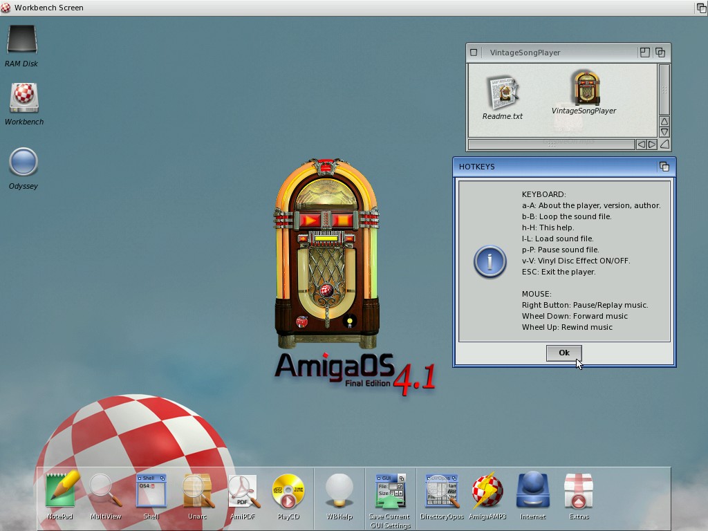Vintage Song Player: Lettore Audio Vintage Multipiattaforma e Multilanguage per OS3/OS4/MOS, il Player supporta i seguenti formati audio: MP3, OGG, MOD, WAV, M4A, FLAC, DBM, HVL
