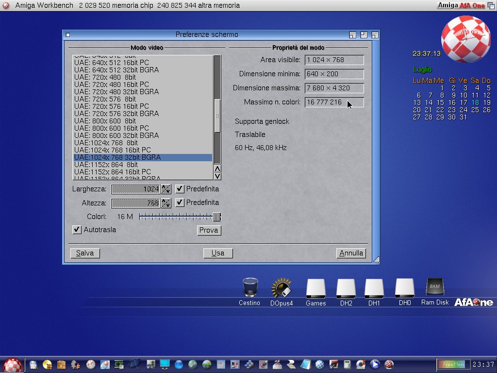 UAEGFX Risoluzione 7680x4320 16Bit richiede 64MB VRam
