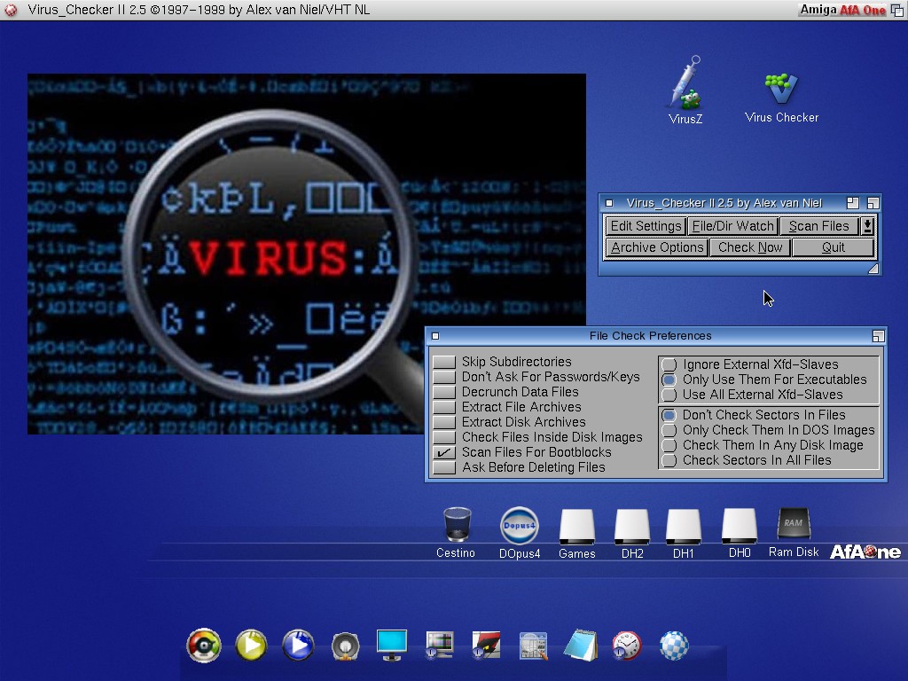 VirusZ: è l'ultimo dei classici Antivirus per computer Amiga che viene ancora aggiornato, questa è la prima versione che funziona su AmigaOS Classico, MorphOS, AROS, AmigaOS 4.x, a causa di alcune limitazioni è ancora una versione beta.