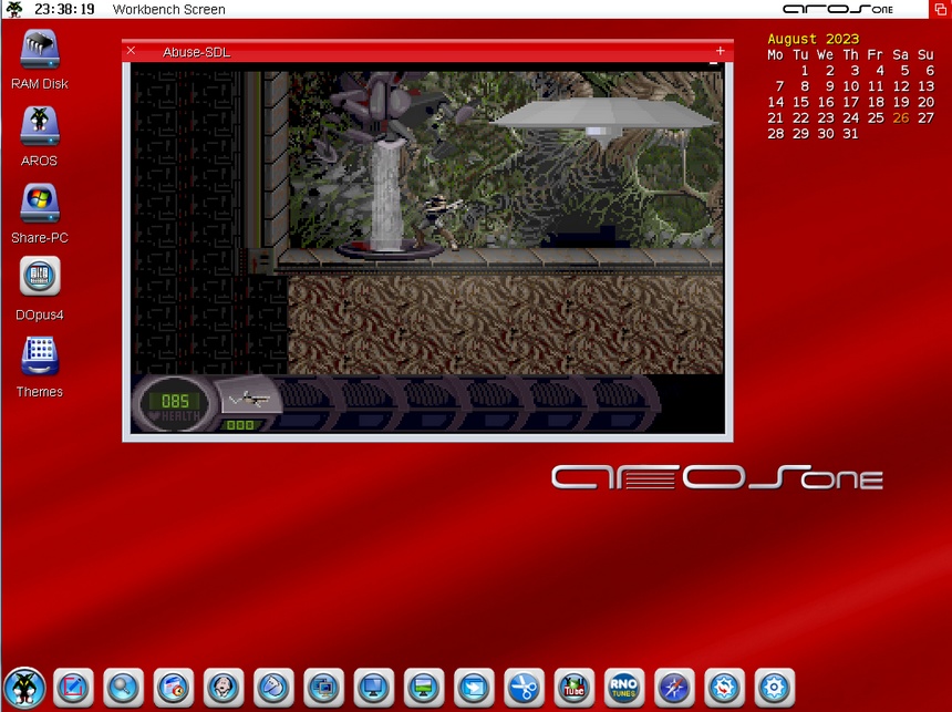 Aggiunto su AROS One x86 "Free Abuse", Abuse è un gioco platform a scorrimento laterale 2D sviluppato da Crack dot Com nel 1995. Il gioco Presenta splendide luci, animazioni realistiche e brutte creature simili ad alieni da distruggere.