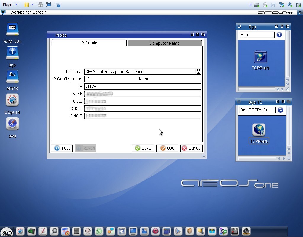 In questi giorni sto perlustrando Aminet alla ricerca di Applicazioni AROSx86 magari svisti o ignorati, fra questi ho trovato "TCPPrefs", quello mostrato nello screenshot, un software utile anche se nel sistema AROS esiste già un programma simile ovvero Network prefs.