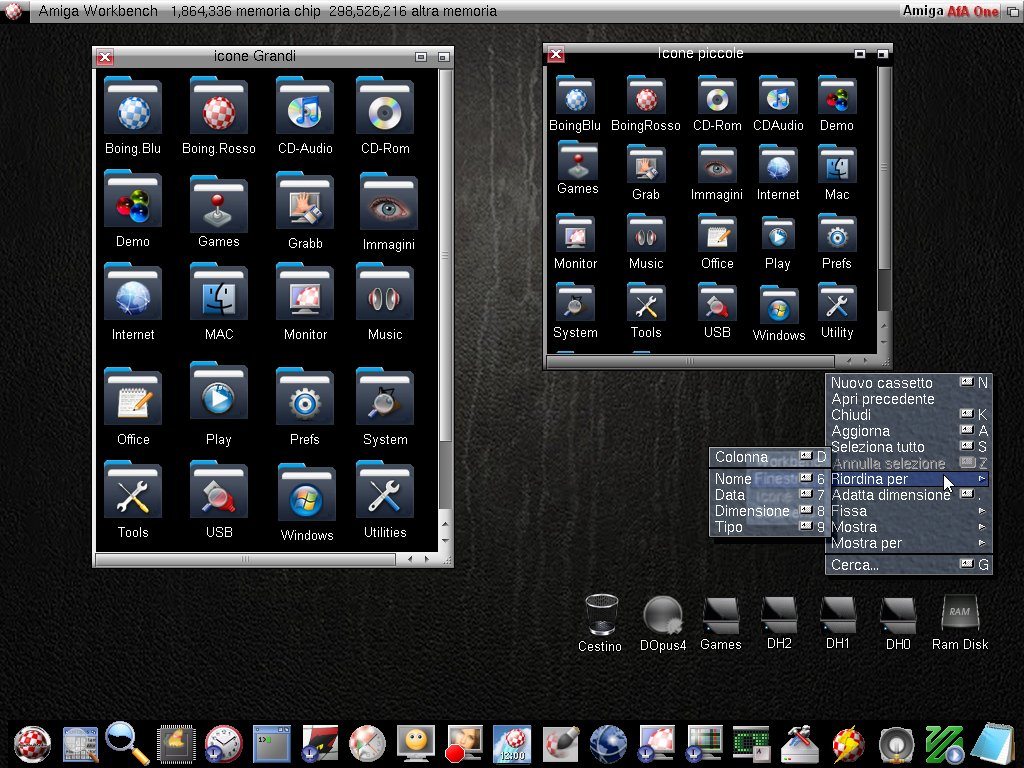 Lo Skin AfA One Black in stile MAC quasi completo, create anche le prime icone Nere, probabilmente diventerà il Workbench ufficiale di AROS One 68k, (per vedere le dimensioni reali delle icone solito tasto destro mouse visualizza immagine)