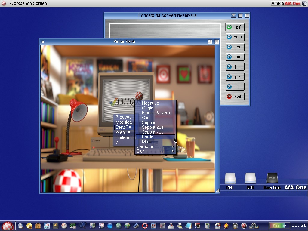 Pintor Web: è un programma free e portable creato con Hollywood 7.0 per AmigaOS 3.x, AmigaOS 4.x, MorphOS 2.x-3.x, WinXP, WinVista, Win7-8-10 a 32 e 64 bits, uno strumento semplice e veloce per la modifica e la gestione delle immagini disponibile in più lingue: Italiano, Spagnolo, Inglese, Francese e Tedesco.