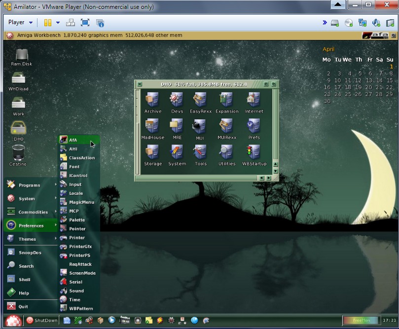 Ancora un mio video su Amilator che mostra la velocità di AFA OS su un vecchio Portatile Dual-Core 4GB RAM, inoltre è possibile vedere come AFA OS esegue velocemente dei file Mp3 e AmigaOS che si connette direttamente alla mia Rete Wireless.
