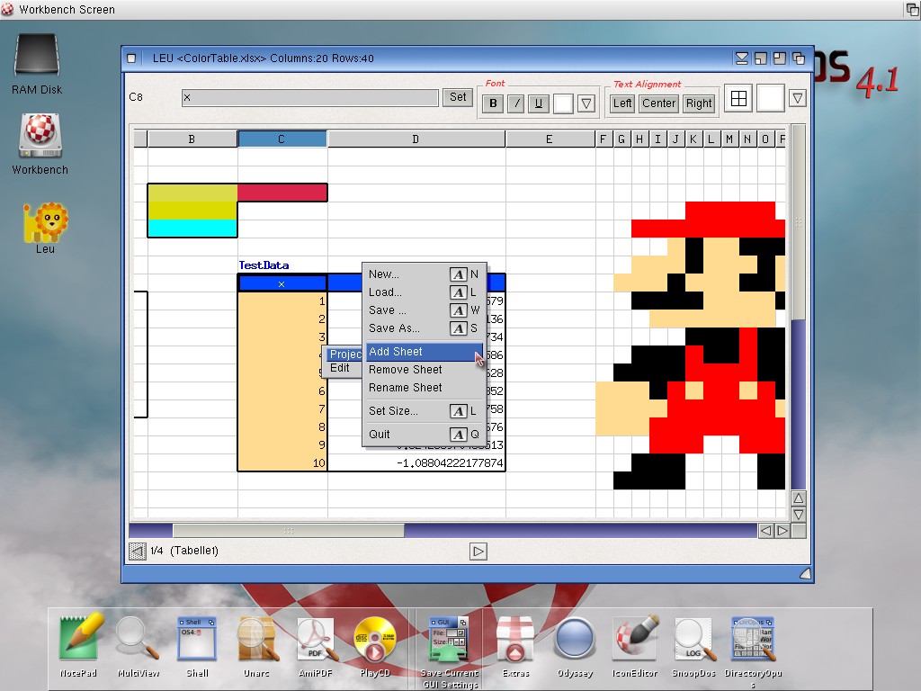 Leu: Foglio di calcolo per AMiGA che gestisce i file XLS, XLSX, ODS, CSV, HTLM etc.., Leu è disponibile anche per OS4, MOS, AROS 68k, AROS x86, AROS x86_64, AROS ABIv1, AROS ARM.
