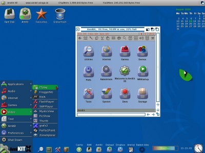 AfAWB 1.4 Ultima versione della Distribuzione basata AfA OS che include alcune particolarità in fase di avvio, una startup insolita per un sistema Amiga (vedi video allegato), lo screenshot mostra invece una variante del Workbench fatta dall'autore in una sua recensione su un forum.