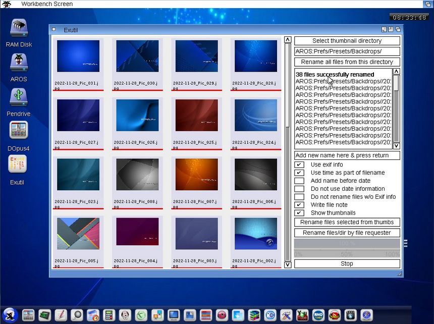 Exutil: Applicazione per OS3, OS4, AROS e MOS basata su MUI che rinomina in batch le immagini con nomi ordinati per Exif o data del file, inoltre è possibile rinominare le immagini con un nome comune (il default è Pic_), seguito o guidato dalla data e da un contatore per ogni giorno del calendario.