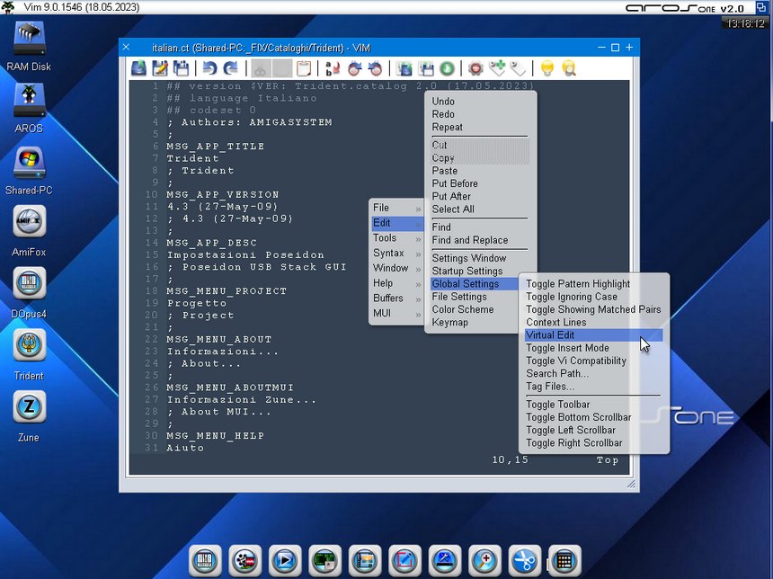 VIM: Editor di testo altamente stabile e configurabile sviluppato per creare o modificare qualsiasi tipo di testo in modo molto efficiente, VIM è disponibile per AROS, OS4 e MOS ed è in continuo sviluppo per migliorare costantemente le sue funzioni.