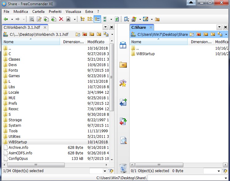 Una bella chicca che probabilmente molti di voi non conoscono, sapevate che su Windows esiste un FileManager sullo stile Dopus4 capace di gestire Floppy ADF e HardFile di WinUAE? bene, grazie a questo FileManager possiamo scambiare file con Windows, eliminare, aggiungere, editare e fare molte altre operazioni su ADF e HardFile (guardate screenshot).