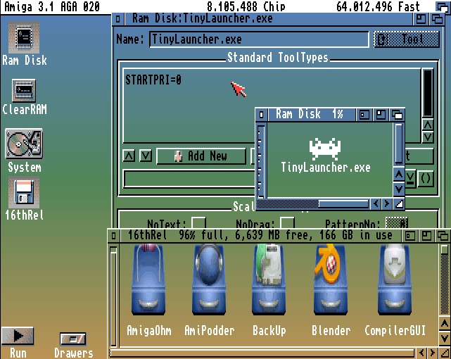 A proposito di comodità, ti consiglio anche di installare l'applicazione Arexx "T.H.E." che ti permette di chiudere tutte le finestre anche le GUI delle applicazioni rimaste aperte premendo semplicemente il tasto DEL. Inoltre, puoi anche cancellare file e icone dal Workbench semplicemente premendo il tasto CANC come si fa normalmente su Windows, più altre funzioni che troverai sul Menu Workbench/Strumenti i comandi volendo si possono tradurre in Italiano con un Editor di Testo.