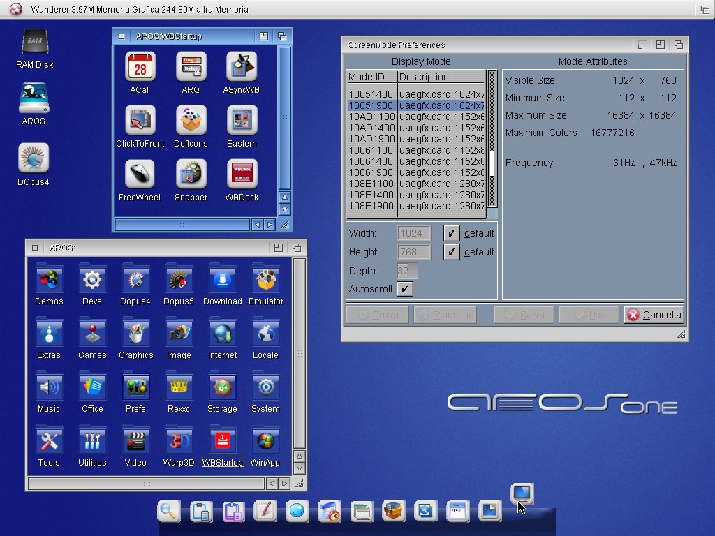 AROS One 68k arricchisce, abbellisce e aggiunge nuomerosi software compatibile free anche recenti nativi OS3, inoltre include icone, skin per finestre e applicazioni personalizzate.