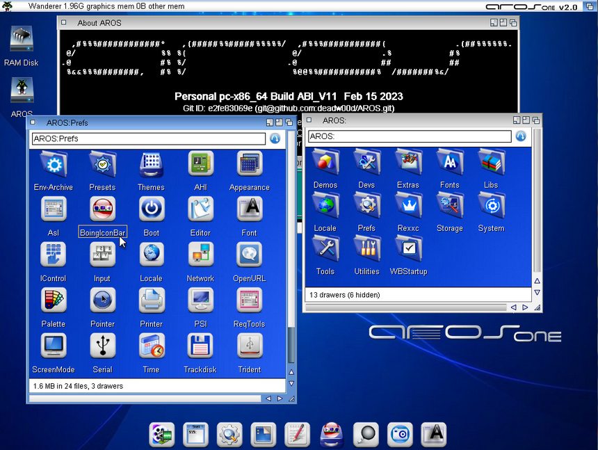 Questo è il prossimo passaggio di AROS One, ovvero un sistema a 64Bit, ho già creato una versione sperimentale, ma non sarà ancora disponibile per il download fino a quando non buon numero di software saranno ricompilati per questo sistema