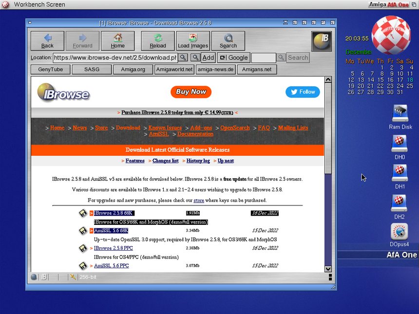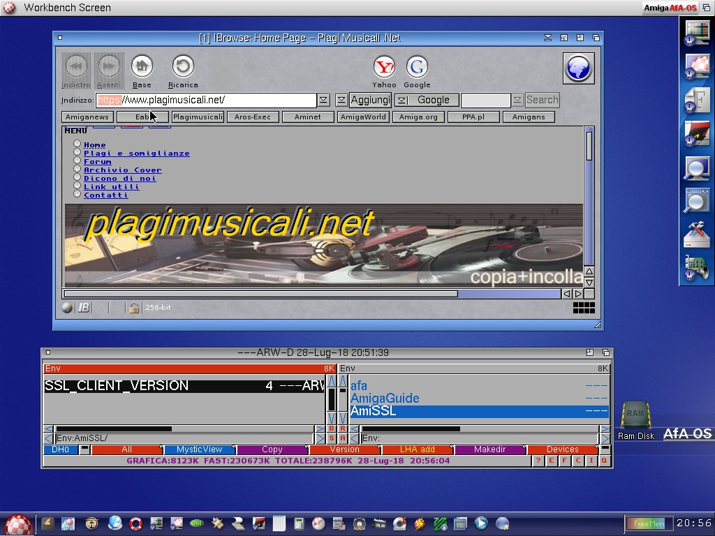 Versione 4.2 pubblica open source di AmiSSL per sistemi operativi basati Amiga che offre piena compatibilità con OpenSSL 1.1.x, il pacchetto include importanti correzioni relative alla sicurezza che viene fornita con nuovi codici di crittografia indispensabili per i moderni servizi basati su SSL (ad esempio HTTPS). Grazie a AmiSSL anche vecchi Browser AMiGA come aWeb e iBrowser possono ora accedere a siti HTTPS senza più ricevere errori vari di protezione (vedi screenshot).