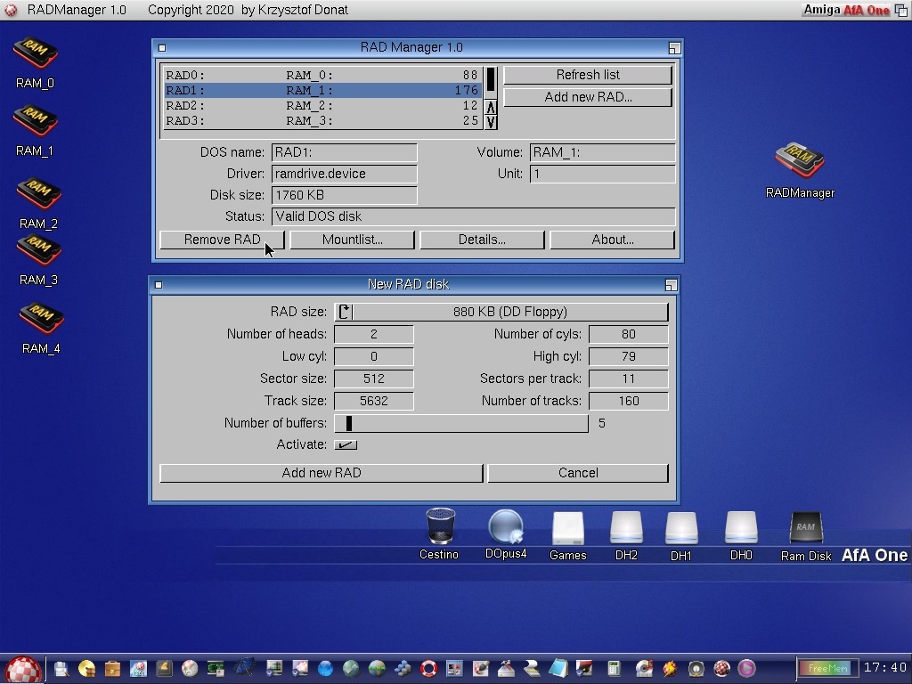 I Dischi RAD sono resistenti al Reboot ed al Reset a Caldo e possono essere usati per avviare applicazioni, giochi etc.. in maniera molto veloce utili per i vari test.