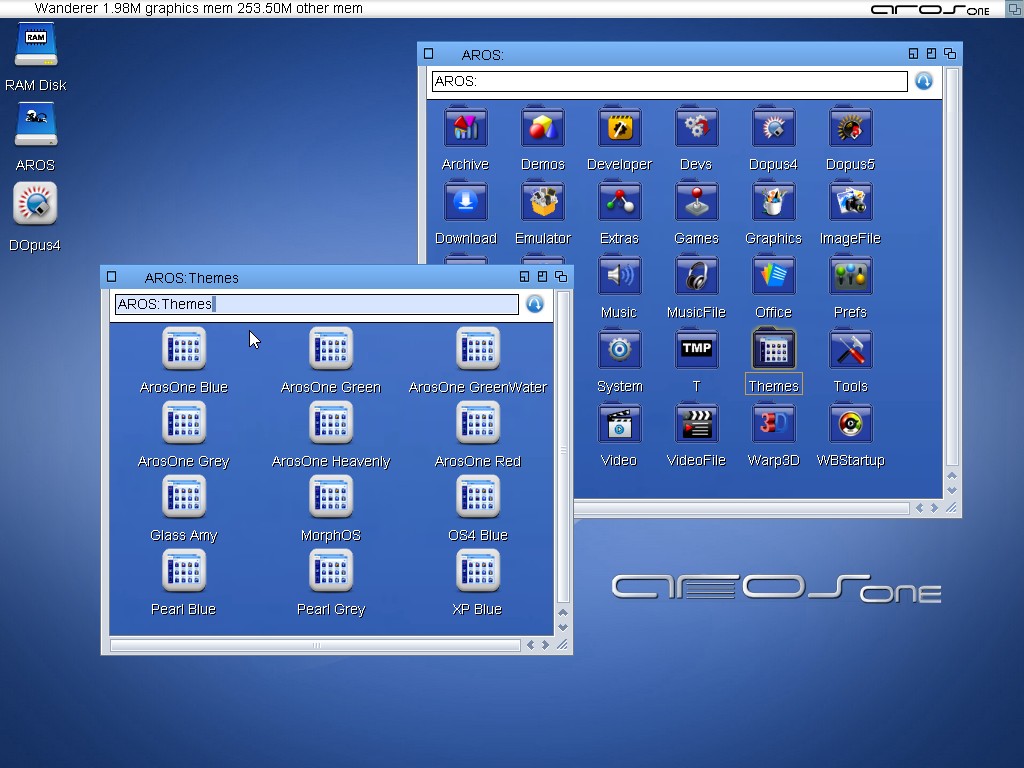 Dopo una settimana di lavoro creato 12 Temi che includono Sfondo Workbench e Finestre, GUI finestre, GUI Zune, Puntatori (facoltativo), l Temi sono compatibili con tutte le versioni AROS 68k e x86 e saranno disponibili sulle prossime release di AROS One x86 e AROS One 68k