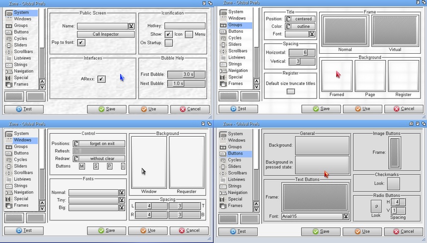 MUI/Zune funziona così, se c'è una preferenza l'Applicazione ignorerà il settaggio di sistema, inoltre le configurazioni Zune personalizzate per singola Applicazione si potranno modificare e salvare senza problemi, mentre personalizzare e salvare quelle di Wanderer è più complicato, per farlo occorre prima eliminare il file di configurazione in ENV e in ENVARC.