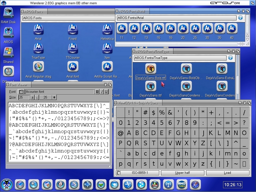 Creati nuovi descrittori di tipo di dati per i vari tipi di font. Ora, su AROS One a 32 e 64 bit, è possibile visualizzare in anteprima i vari font cliccando sui file con estensione ".font" o ".ttf". Sarà anche possibile visualizzare in anteprima i font cliccati tramite file "numerici", ovvero quelli presenti nelle varie cartelle dei font Bitmap.