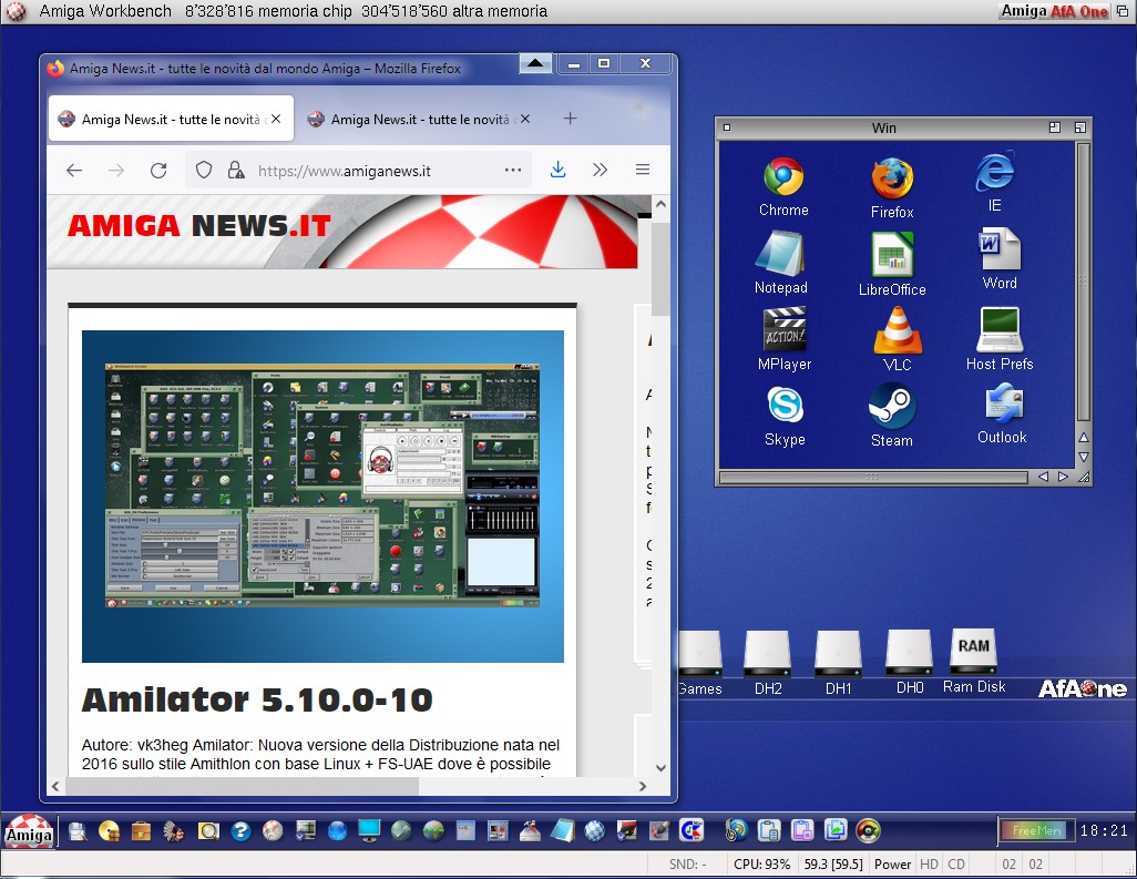 Non solo, anche AROS 68k si potrebbe avviare direttamente con Amilator con una velocità che nessun Amiga espanso potrebbe fare, lo stesso AfA One è velocissimo su Amilator, specialmente adesso che FS-UAE è stato aggiornato.