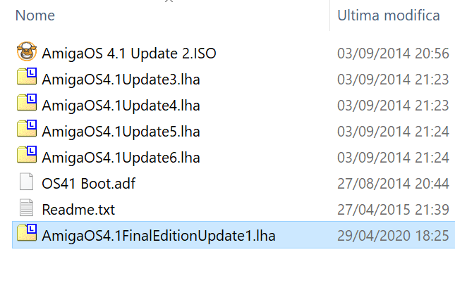 MUI è UPDATE1 per Amigaos4.1FE <<--- non installarli subito, fai prima gli altri aggiornamenti questi li devi fare per ultimi escluso l'Update1 devi farlo come spiegato nella guida offline a parte e metti l'update1 nella cartella partizione Work: e poi procedi con l'installazione