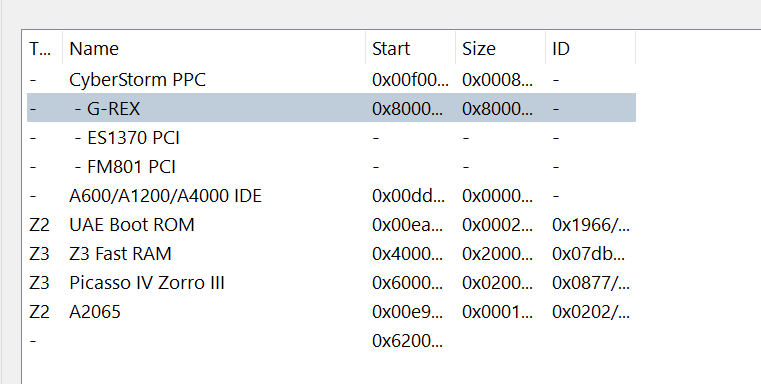 La G-Rex non condivide la memoria in winUAE così puoi allocare più memoria ecc.