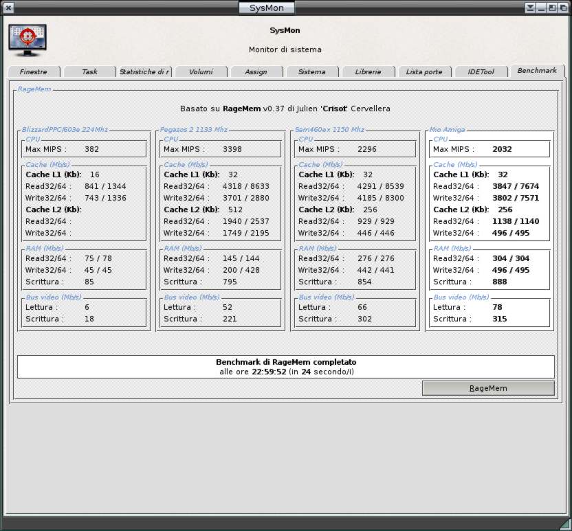 Guarda l avrei fatto volentieri anzi se mi spiegate dove trovo sysmon come si installa e USA faccio il test cmq ho una sam 1.150 MHz.ho visto che amigait ha fornito i risultati cmq.