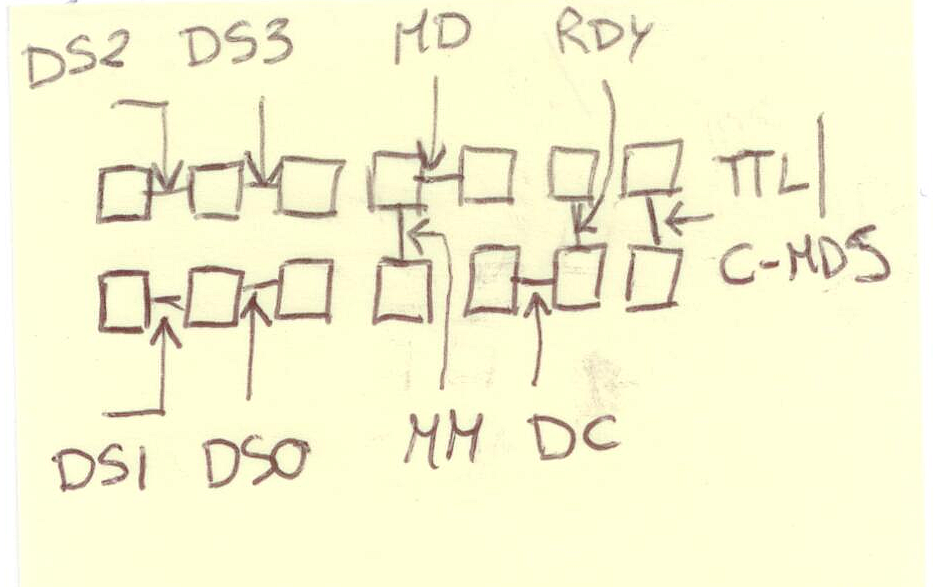 Ciao come promesso ti posto un disegno dei pin dietro al floppy disk fammi sapere se è leggibile.