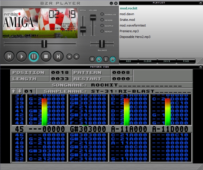 BZR Player: Nuova versione del famoso lettore Audio gratuito stand-alone per PC sviluppato da un Amighista che supporta più di 640 formati audio, tra questi ritroviamo moltissimi formati musicali nativi AMiGA, ma anche file musicali PS3, XBox, Wii, PS2, Windows, Atari, 3DO, MS-DOS, Saturn, Acorn, C-64, ZX e tanti altri ancora. Il software include una serie di funzioni utili per migliorare l'ascolto dei brani musicali, tra le caratteristiche del programma troviamo la possibilità di eseguire brani musicali anche se compressi in RAR, ZIP, 7-ZIP, LHA, ATR, GZIP, BZIP2, supporta Playlist M3U, PLS e M3U NEZPlug, offre informazioni dettagliate sui ogni file audio, mostra i tag MP3 (ID3v1 e ID3v2), aggiunge Pitch e Reverb su ogni suono, aumenta o abbassa la velocità del brano, streaming da Stazioni Radio Internet e molto altro ancora. In QUESTA pagina Web, è possibile vedere tutti i formati supportati ed ascoltare o scaricare qualche sample per ogni "estensione".