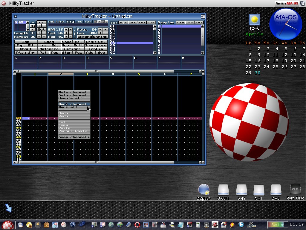 Fasttracker II like, custom graphical user interface with context menus