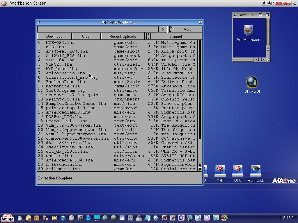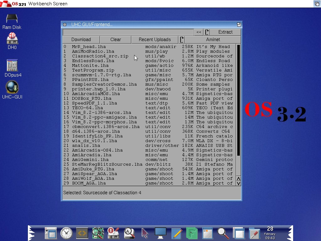 In fase di Test una bella GUI per il pacchetto UHCTools, grazie a questa applicazione è possibile avere un elenco in finestra e scaricare singolarmente gli archivi recenti da numerosi portali come Aminet, OS4 Depot, AROS Archive, Morph Storage, WHDLoad e molti altri.