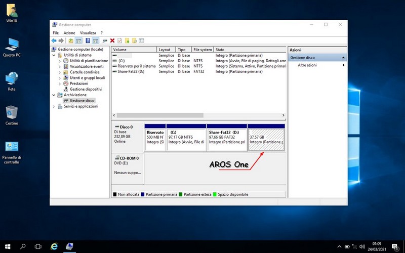A questo punto avviate un Programma che Gestisce le Partizione e formattate questa seconda partizione "residua" in FAT32, fatto questo la partizione sarà visibile sia da Windows che da AROS disponibile per condividere i dati fra i due OS.