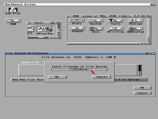 Allora intanto ne puoi usare uno (sono due versioni diverse), come tutte le cose di Amiga OS puoi metterlo dove vuoi ma il suo posto è L, in quella cartella ci troverai tutti gli altri File System ed è in quel percorso che normalmente è preimpostato HDToolBox.
