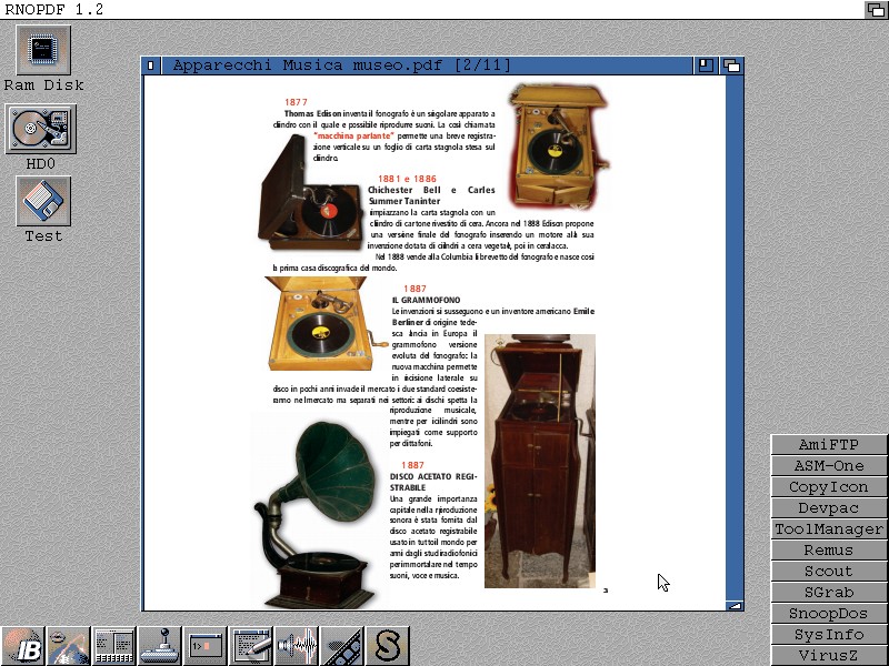 Con un sistema FPU poi eseguire entrambi gli eseguibili, indipendentemente dal tipo di libreria installata, con OS.3.1 per aprire velocemente RNOPDF è consigliato un 68030+68882.