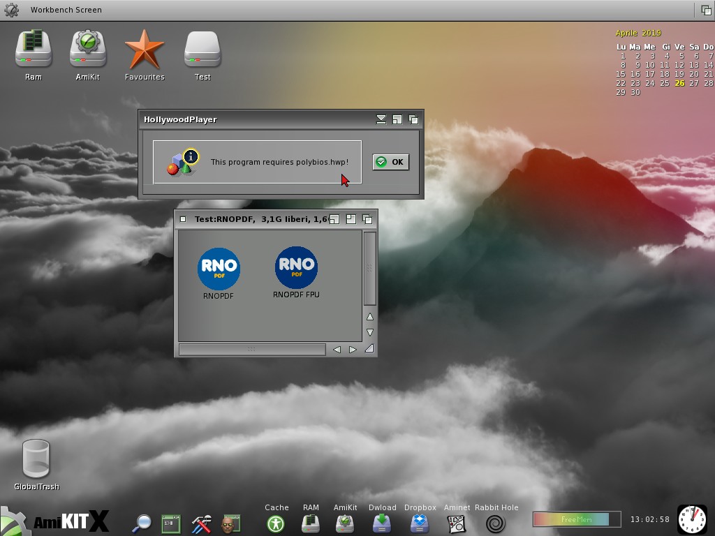 MUIRoyale è un'altra cosa, Amikit AmikitX senza il Player e le Libreriae Hollywood non potrà mai avviare o utilizzare RNOPDF o altri programmi sviluppati con Hollywood come LovVieW, VAMP, VTM, ModEplorer, AnimWebConverter, di sicuro nel tuo Amikit ci sono quelle librerie, guarda lo screenshot e vedi come si comporta AmikitX senza le librerie Hollywood, con Amikit8 idem con patate. :ride: