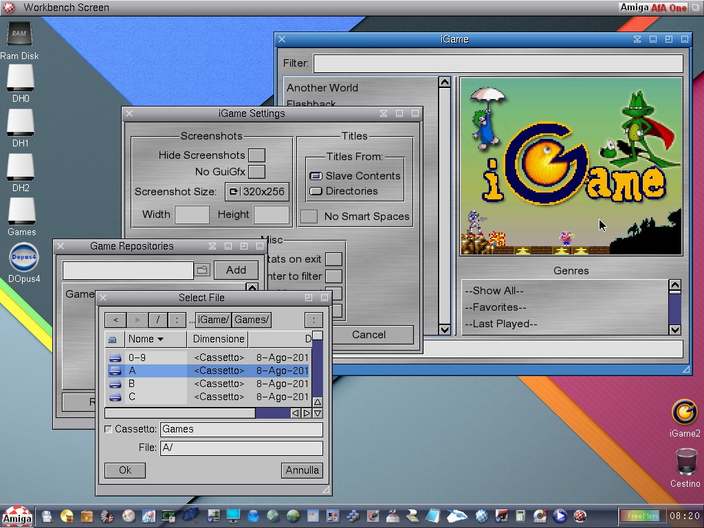 iGame: Famoso Frontend OS3/OS4/MOS per lanciare giochi WHDLoad in maniera semplice e veloce, ad ogni gioco può essere associato uno screenshot.