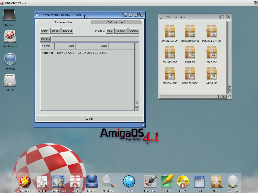 Ci sono alcuni problemi su "RNOArchive" sia su OS3 che su AROS x86, con gli Archivi RAR ci sono problemi sulla RAM mentre sugli archivi "tar.bz2" archives dalla scompattaziuone si ottiene uno strano file nominato "unnamed.dat".