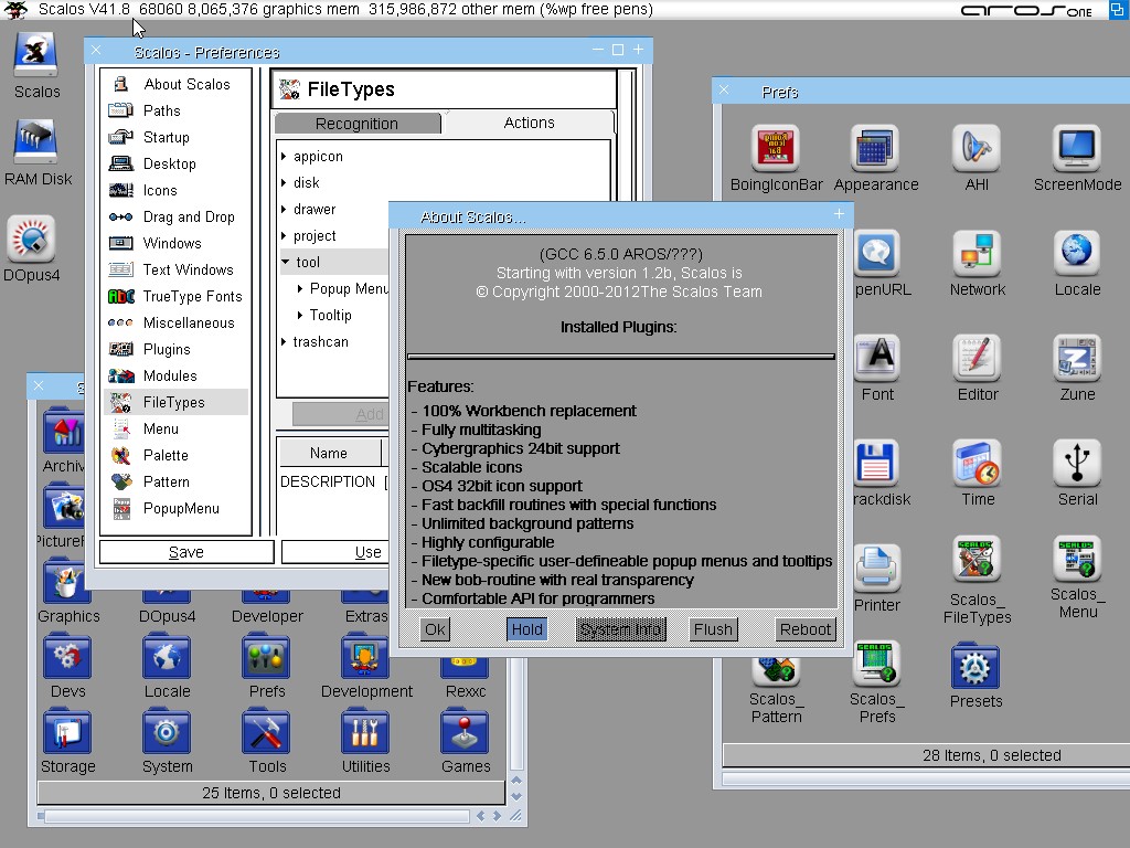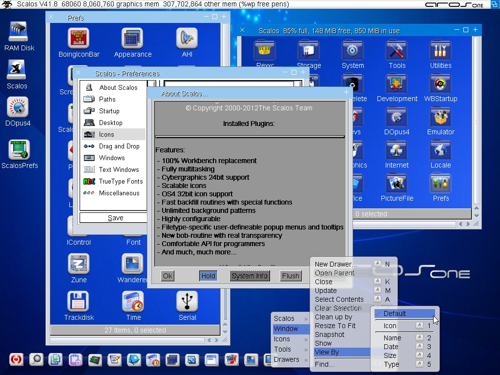 AROS 68k Scalos Trattasi di una integrazione si Scalos su AROS One 68k la versione Scalos installata che trovate in Contrib AROS 68k è molto più aggiornata della versione Scalos di OS3, tempo fa avevo provato ad installare sul mio AROS One la versione Amiga di Scalos ma non andava bene, questa versione aggiornata nativa AROS è un'altra cosa.