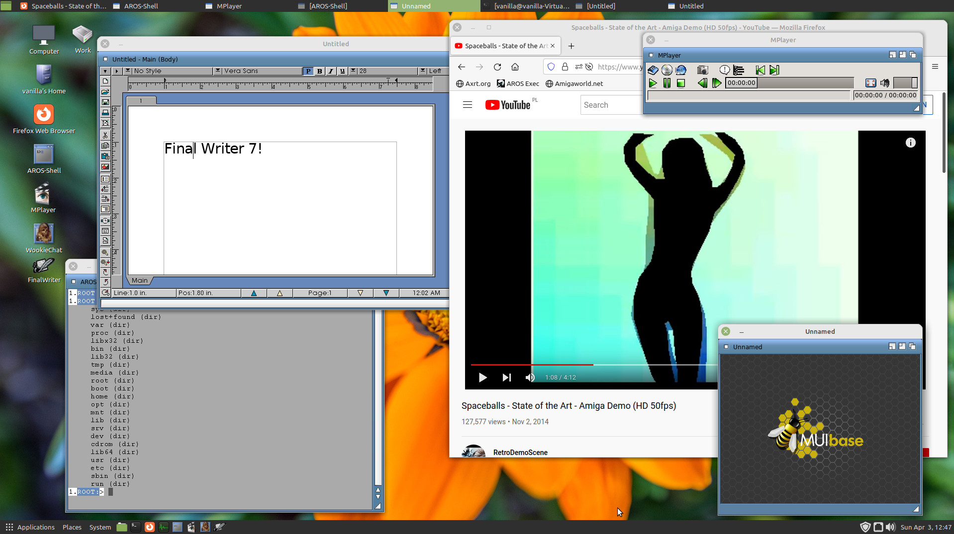 Questa versione include 4 applicazioni: AROS-Shell, MPlayer, WookieChat e Final Writer 7 (demo). Inoltre possono essere utilizzate anche applicazioni AROS x86_64 come MUIbase!