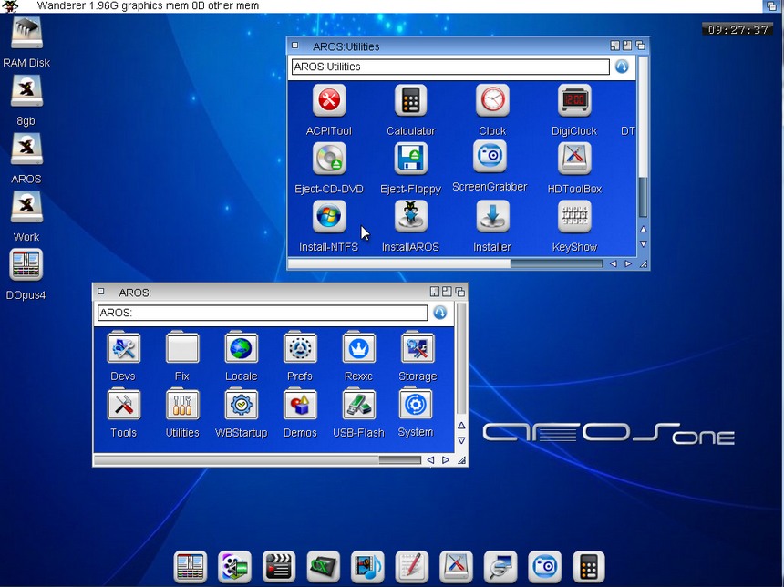 Su AROS One ci sono anche delle novità, una di queste è la possibilità di cambiare tutte le icone del sistema e dei Programmi (un migliaio circa) in pochi secondi attraverso un semplice click che esegue un installer, vedi video allegato.