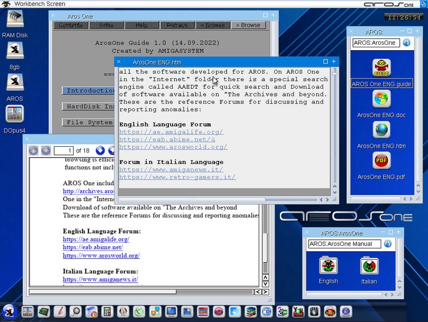 La seconda novità come mostrato nello screenshot, la presenza del Manuale di AROS One creato in duplice versione Italiano è inglese nel formato Amiga GUIDE, PDF, HTM e DOC (Windows).