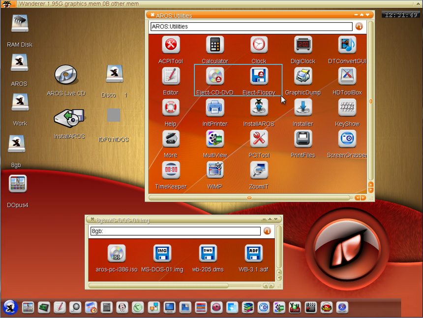 Il montaggio delle immagini ISO-CD, Floppy ADF, DMS e IMG (floppy MS-DOS ), su AROS One x86 possono essere montate semplicemente facendo clic sull'icona, vedi screenshot