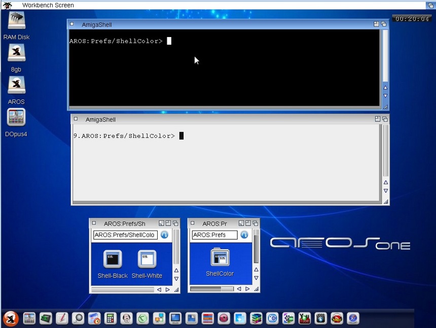 Nuova funzione per AROS One x86, per coloro che non amano la Shell "Grigia", ho creato due varianti che permettono di avere una Shell "Bianca" o "Nera", vedi screenshot.