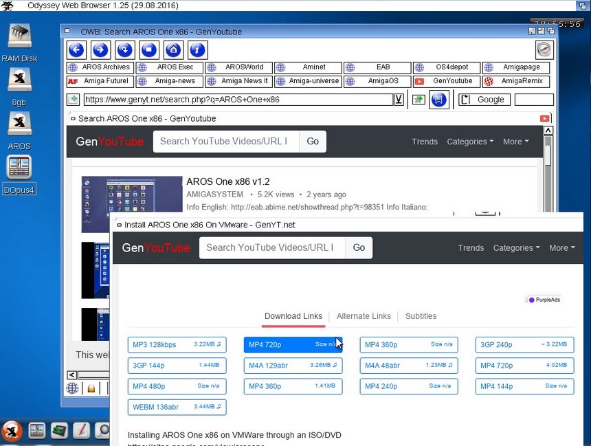 Su AROS One x86 oltre ad AmiTube, anche con OWB è possibile scaricare i Video di Youtube in molti Formati Audio e Video.