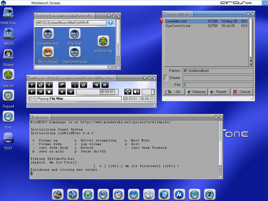 Creato per AROS One un piccolo script per 'Wildmidi' perla conversione di file MIDI in file Wave su 32 e 64 bit v11.