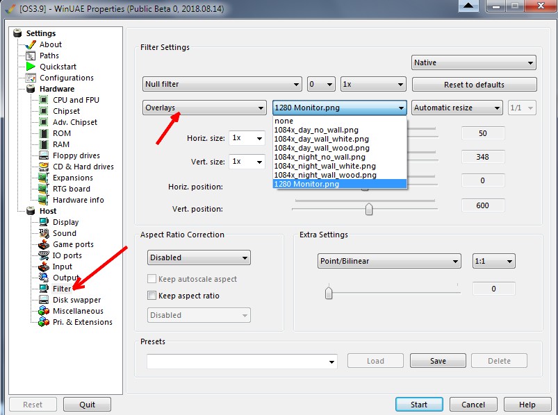 Una volta create o copiate le immagini vai in "Filter" (guarda screenshot) setta il tipo di immagine la posizione e salva il config . Fatto questo ogni volta che usarei quel config WinUAE aprirà il sistema dentro quella immagine, per avere una migliore qualità è consigliabile usare uno schermo intero, QUI c'è una discussione con altre info e dove ci sono i link delle immagini che ti ho allegato, QUI un'altra discussione a riguardo e altre immagini create da utenti.