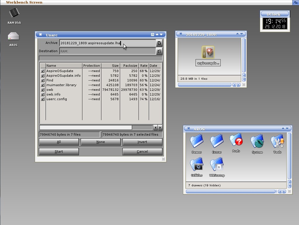 AspireOS Aggiornamento della distro AROS dove gli utenti Amiga si sentiranno a casa, il sistema è molto somigliante ad Amiga OS ad eccezione del BoingIconBar ispirato ad una toolbar usata nei MAC. Aspire OS è di piccole dimensioni la ISO può essere masterizzata e avviata da PC dove sarà possibile installare il sistema su HD, Pendrive, SD, o HD Esterno, AspireOS come da scelta del suo autore non può essere installata su Macchine Virtuali salvo particolari smanettamenti fatti dall'utente esperto.