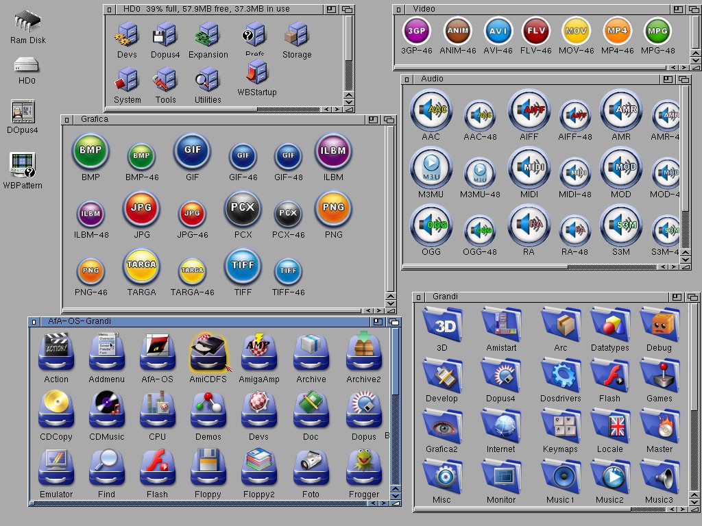 Se stai usando le Icone Standard OS 3.9 quelle resteranno tali, per vedere le icone PNG sul Workbench devi avere le Icone PNG, ecco come dovresti vedere le icone PNG su un OS 3.9 standard RTG con la nuova libreria :felice: