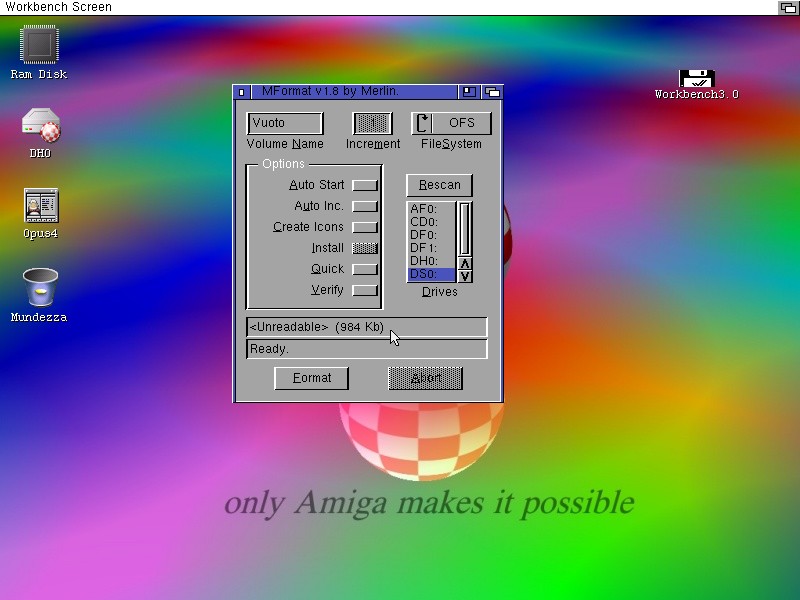 Creare Floppy Virtuali Bootable: Per chi non ha un Lettore Floppy esistono più metodi per creare o utilizzare dei Floppy Virtuali, il metodo più semplice è quello di montare una immagine floppy già esistente (ADF) oppure creare Floppy con porzioni di Hardisk con applicazioni come (HFM) ma questi metodi anche se funzionali non permetteranno mai di fare il Boot da questi dispositivi.
