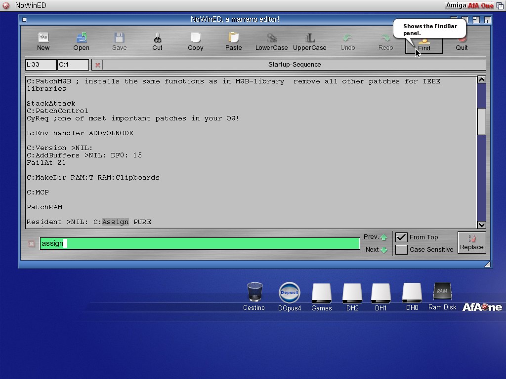 NoWinED è un Editor di testo Multipiattaforma per OS3/OS4/AROS x86/MOS scritto in MUI capace di gestire più file contemporaneamente impiegando per questo delle "pagine" per ciascun file.